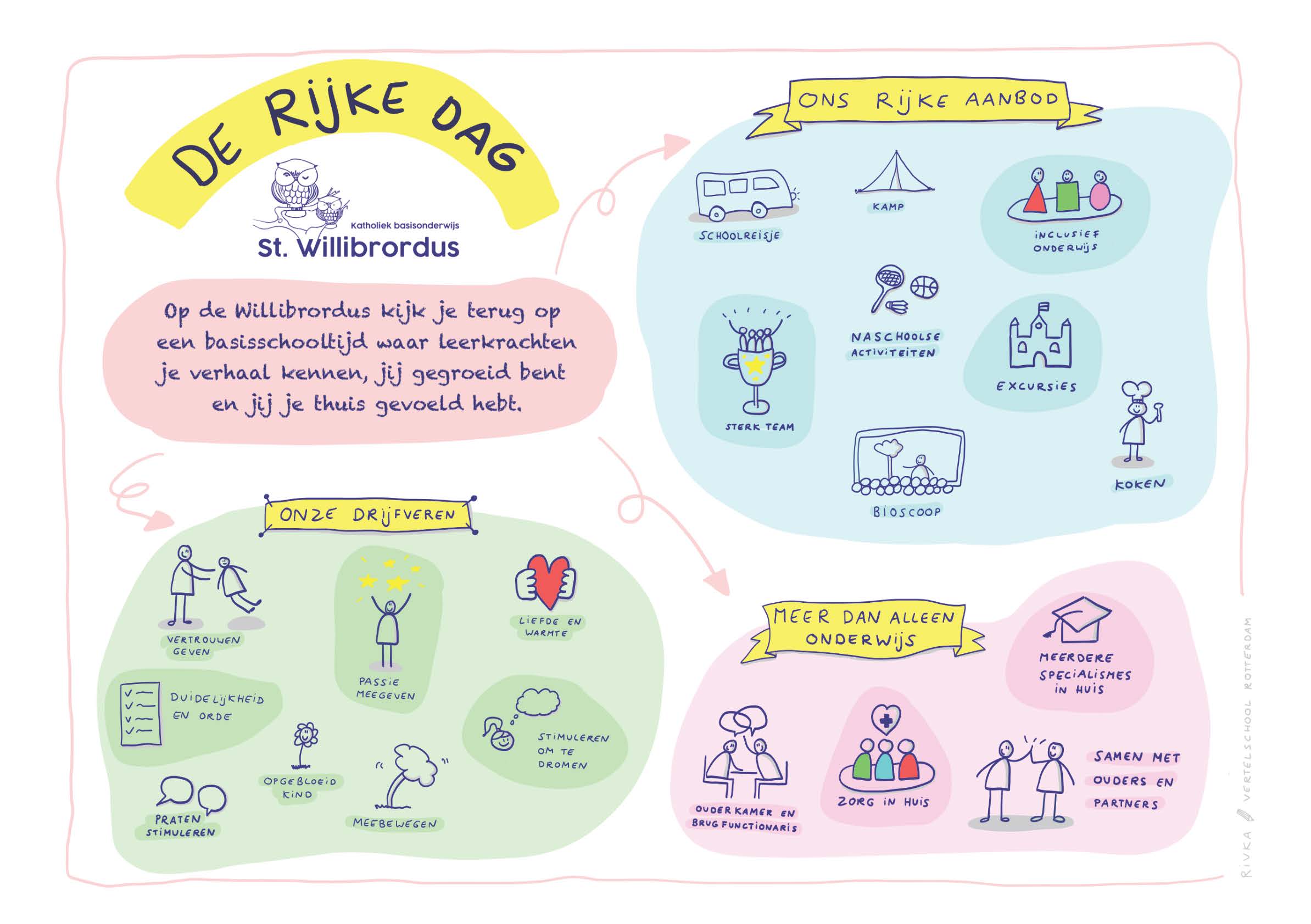 Op de Sint Willibrordusschool is het en-en, niet of-of. Je leert er lezen én dansen. Rekenen én koken. Schrijven én schaken. Daarom bieden wij onze leerlingen een Rijke Dag. Een dag die bestaat uit goed basisonderwijs aangevuld met een rijk aanbod van talentgerichte onder- en naschoolse activiteiten.